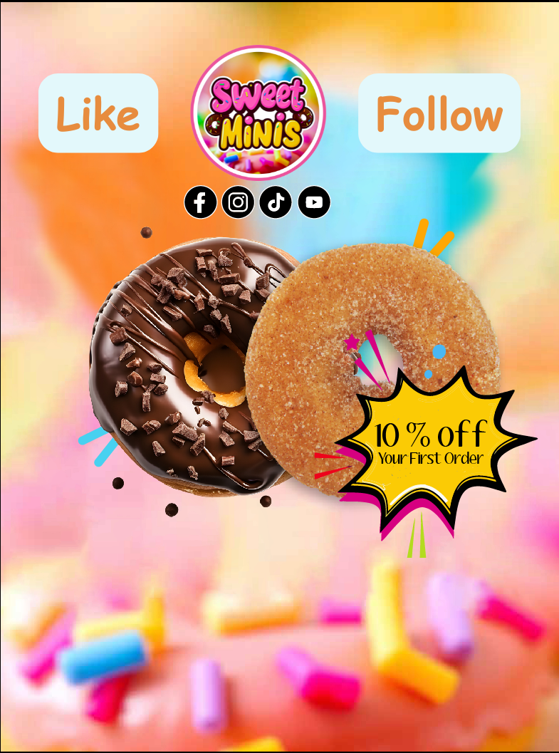 From lively parties to quiet cravings, our mini donuts are crafted to bring a smile. Freshly baked, beautifully decorated, and irresistibly delicious — adding sweetness to every moment.
